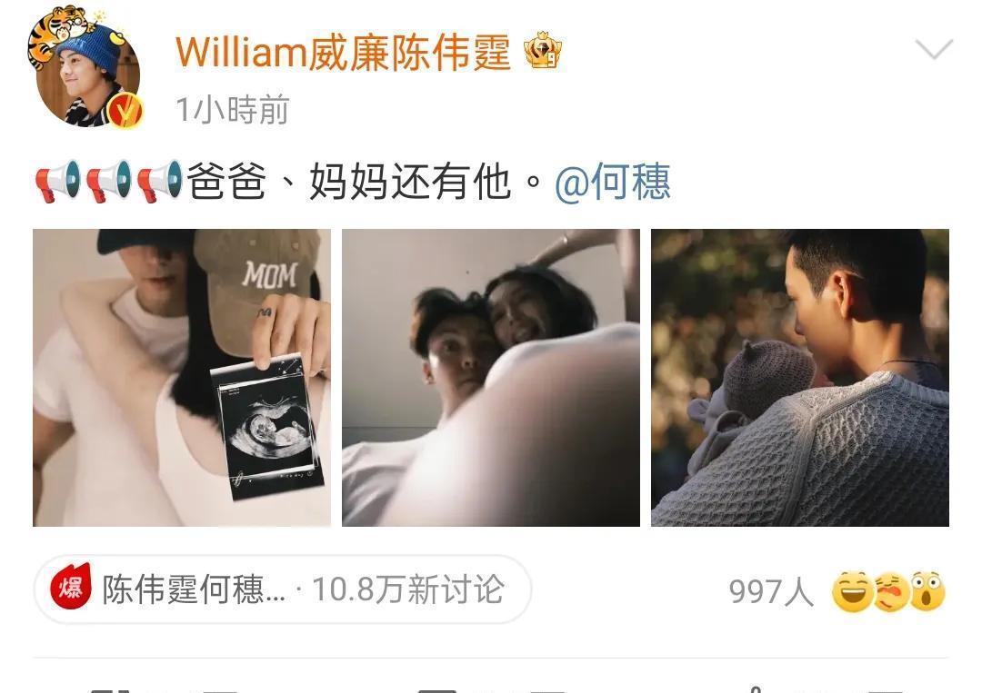 热搜爆了!陈伟霆和何穗一起官宣生子了!